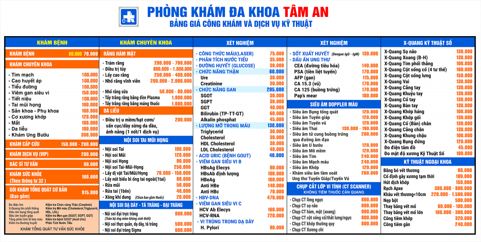 Bảng giá khám chi tiết