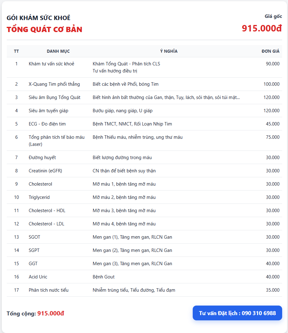 Gói Khám TỔNG QUÁT CƠ BẢN