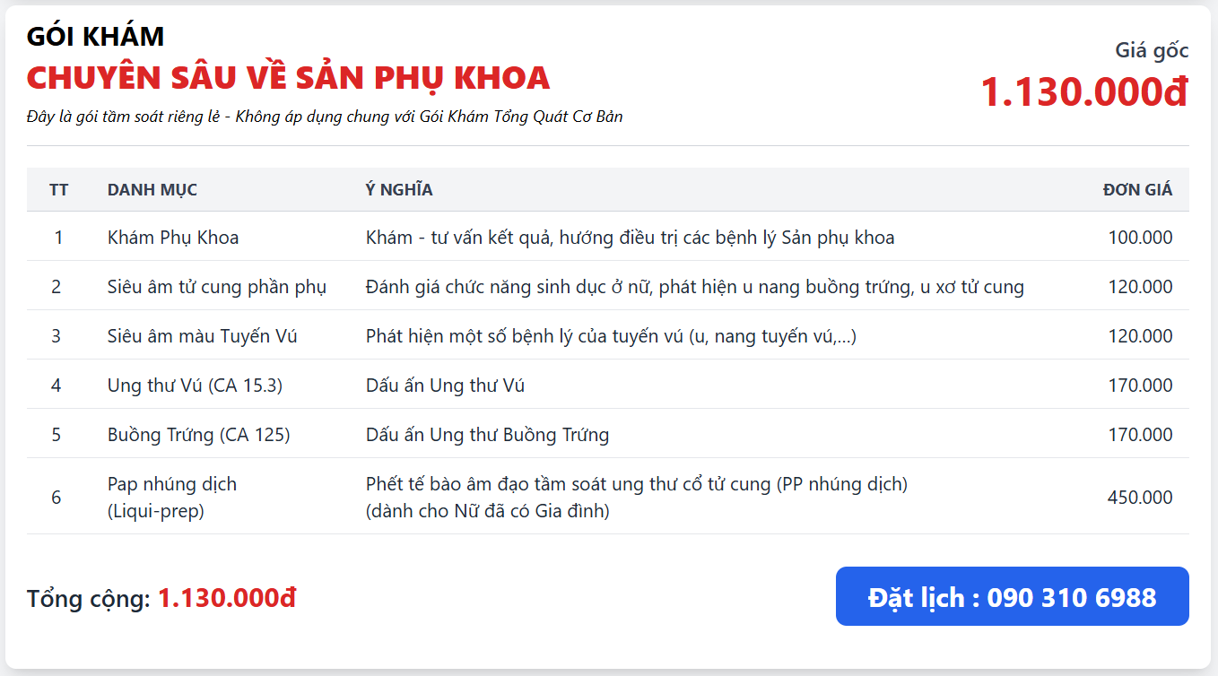 Gói khám Chuyên sâu SẢN PHỤ KHOA